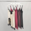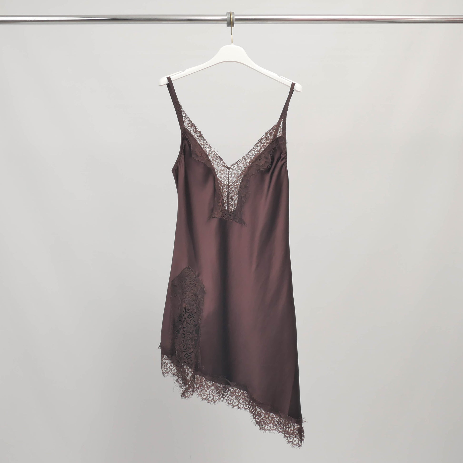 Une élégance sensuelle s’invite dans votre dressing avec cette robe satinée aux délicats empiècements de dentelle. Inspirée de l’esprit lingerie, elle revisite la nuisette classique dans une version sophistiquée à porter aussi bien en journée qu’en soirée.
