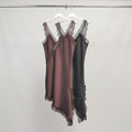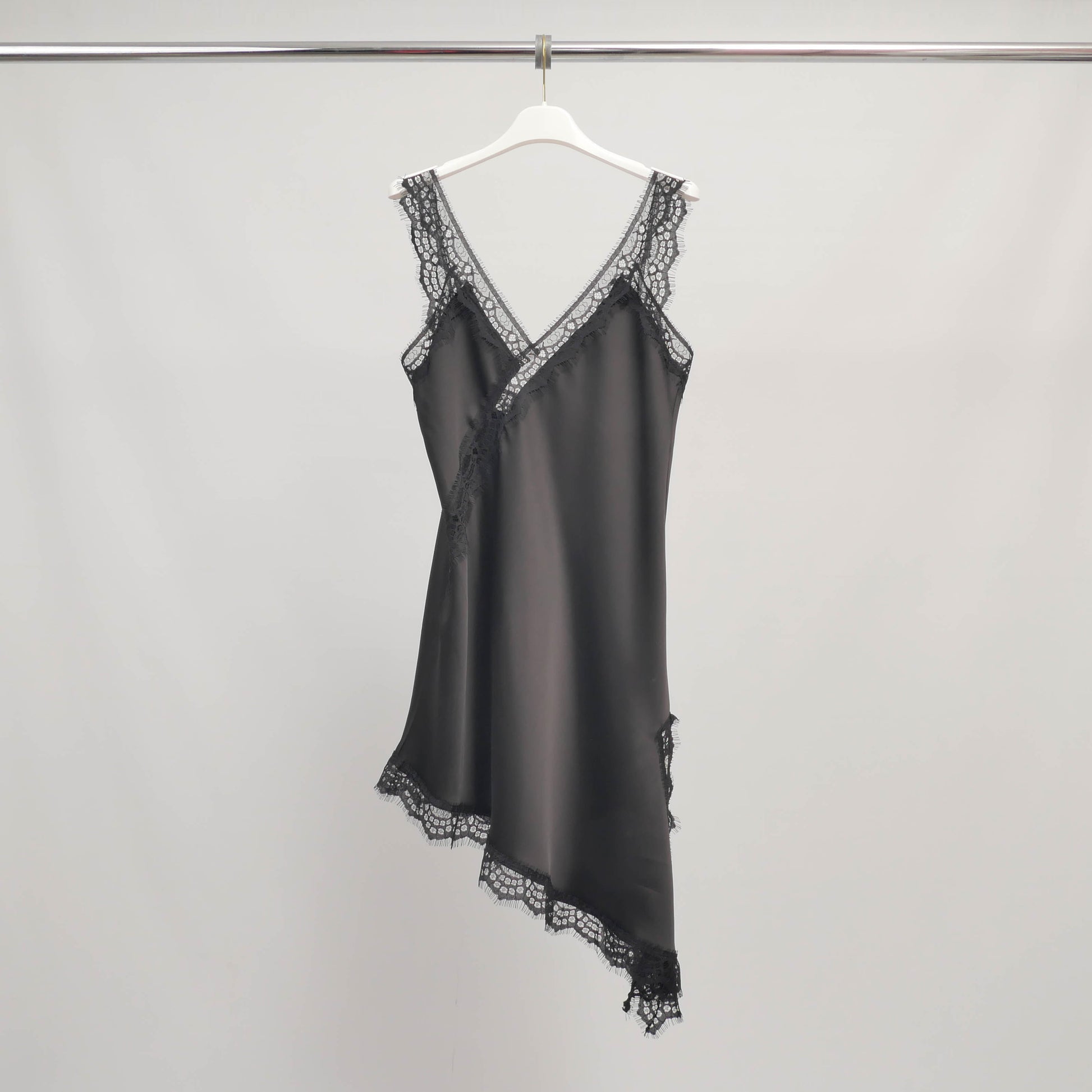 L’élégance se fait sensuelle avec cette robe satinée à la coupe fluide et à la finition délicate. Confectionnée dans une viscose douce et légèrement brillante, elle se distingue par son ourlet asymétrique et ses détails en dentelle fine, placés avec subtilité sur l'encolure en V et la base. Les bretelles larges et la coupe biaisée épousent naturellement les courbes pour une silhouette féminine et fluide. Un modèle sophistiqué à la fois raffiné et moderne.
