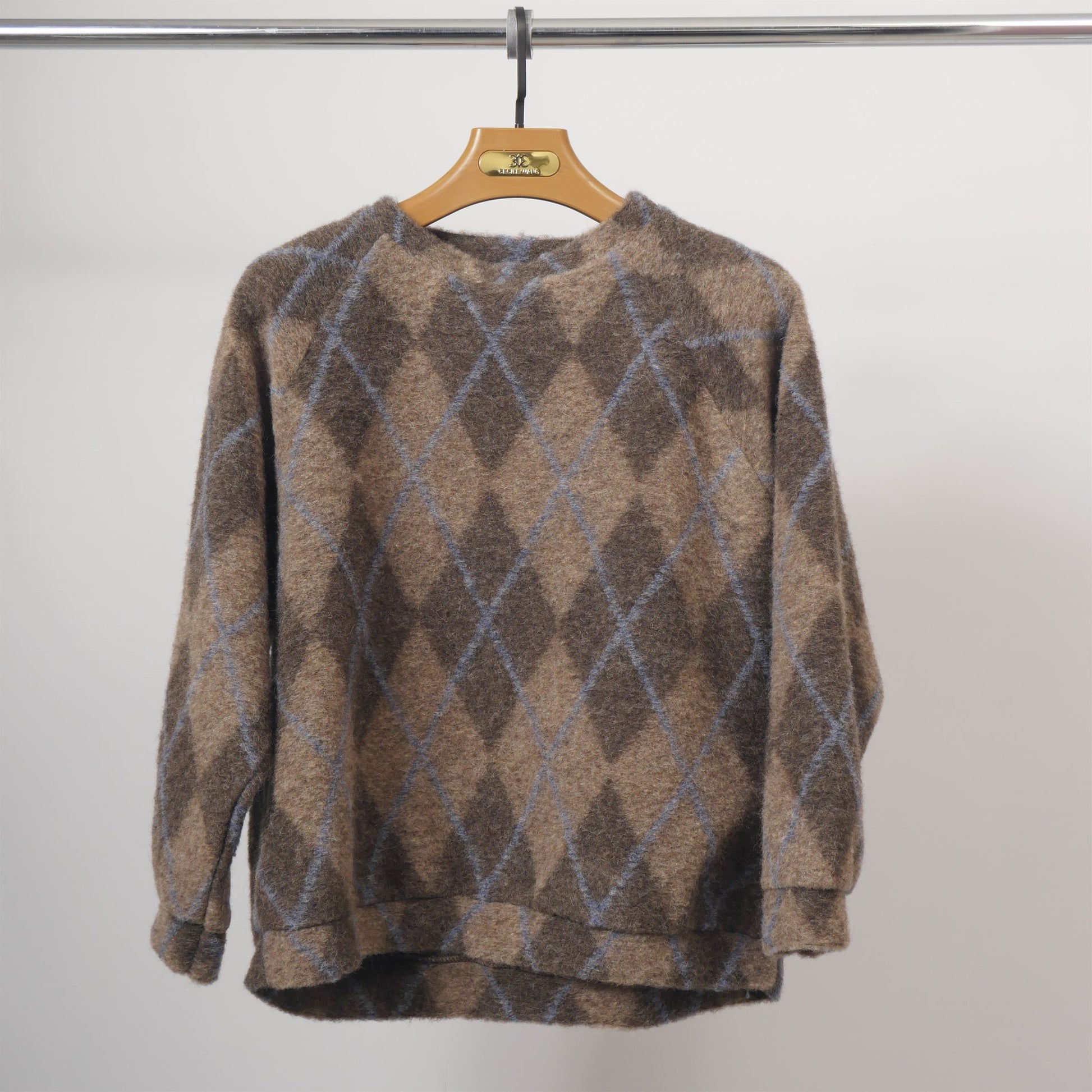 Sweat en laine à motif losange rétro brun – TDM11522-3