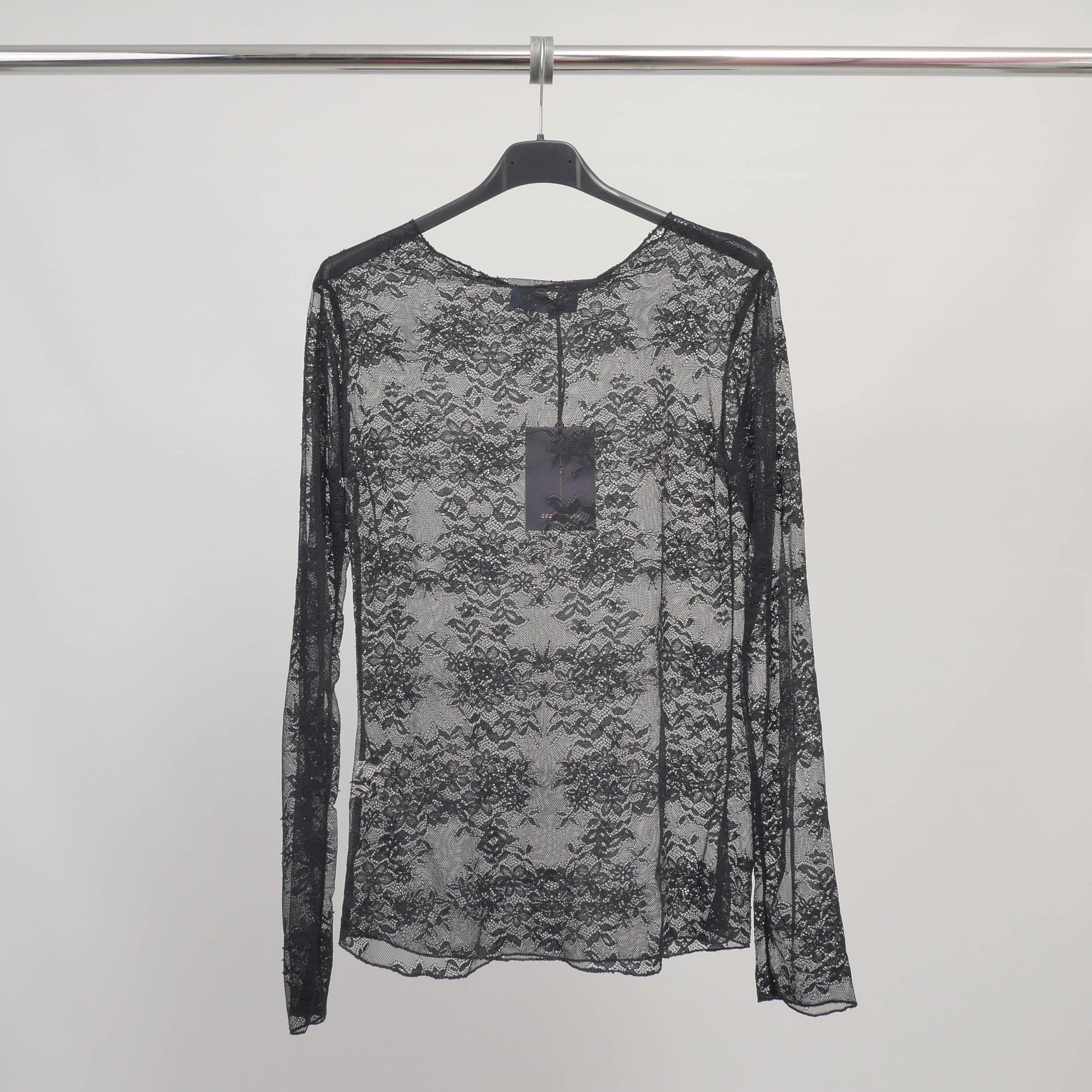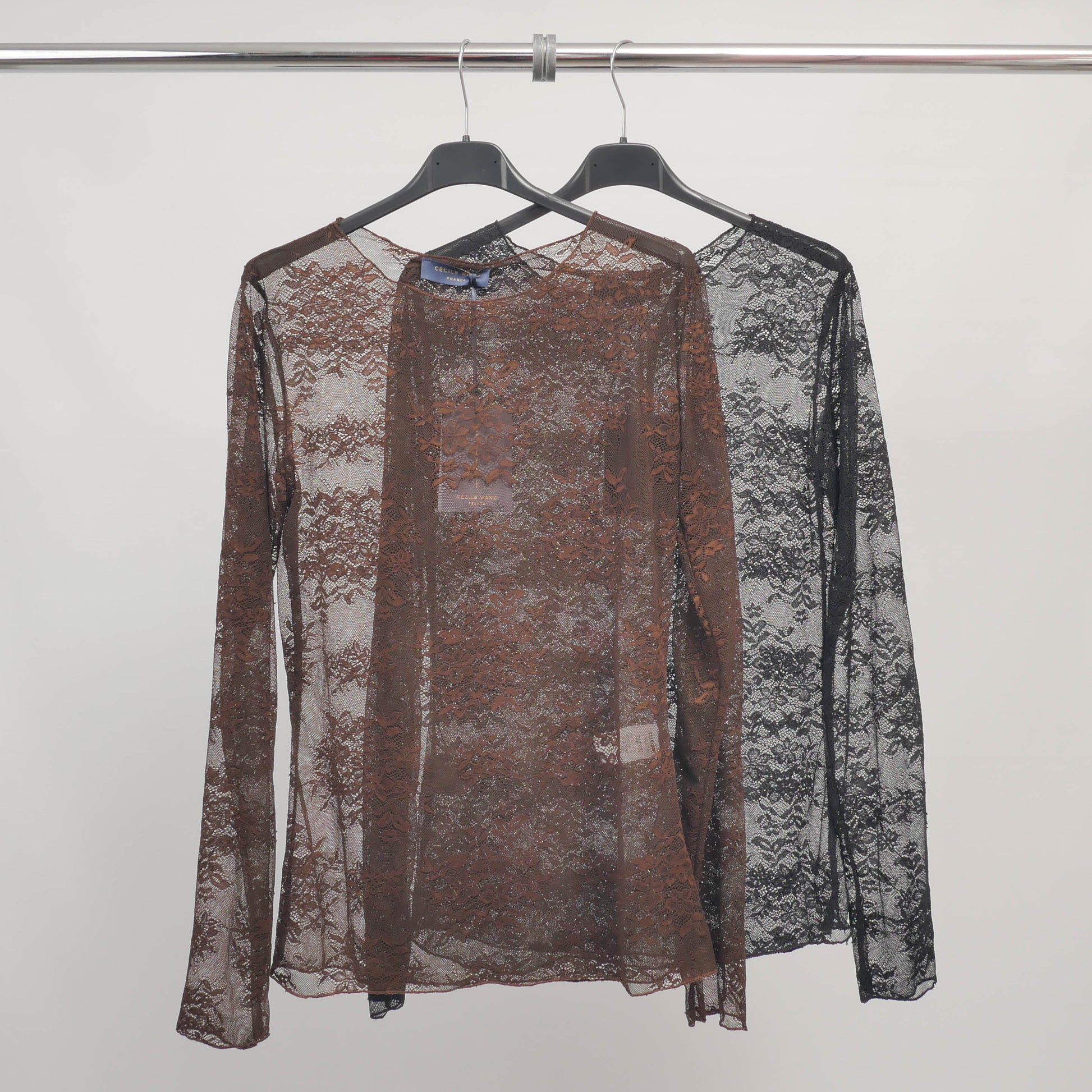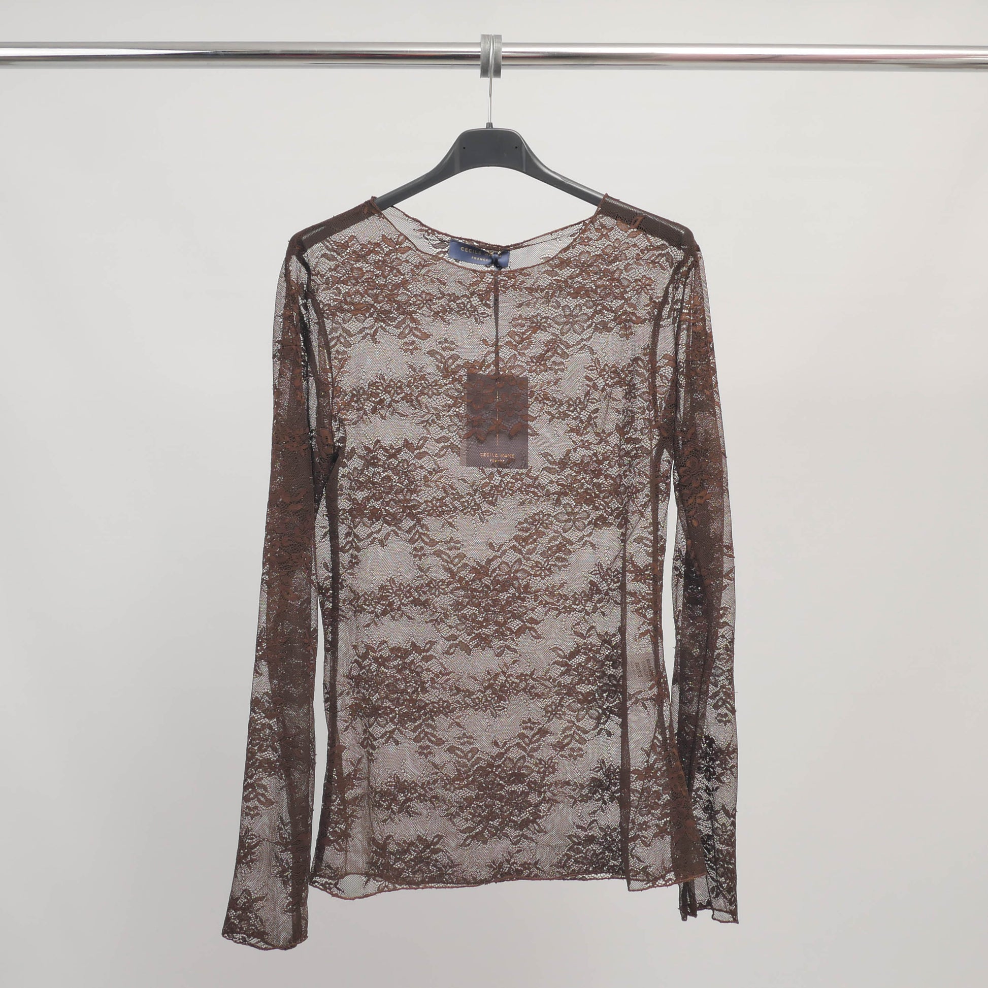 Un jeu de transparence subtile et de féminité affirmée : ce top en dentelle près du corps est une pièce forte au charme délicat. Confectionné dans une fine dentelle florale extensible, il épouse la silhouette tout en légèreté, tout en laissant entrevoir la peau avec élégance. Son encolure ronde épurée et ses manches longues équilibrent la sensualité de la matière pour un rendu raffiné. Portez-le sous un blazer oversize, avec un pantalon taille haute ou une jupe satinée pour un look sophistiqué et audacieux, du jour à la nuit.
