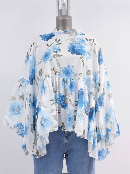 Cette tunique à fleurs 01114-CO est fabriquée en voile de coton, offrant une légèreté et un confort sensationnels. Avec ses manches chauves-souris, elle vous procurera une liberté de mouvement absolue. Très douce et agréable sur la peau. Idéale pour un look printanier et tendance.