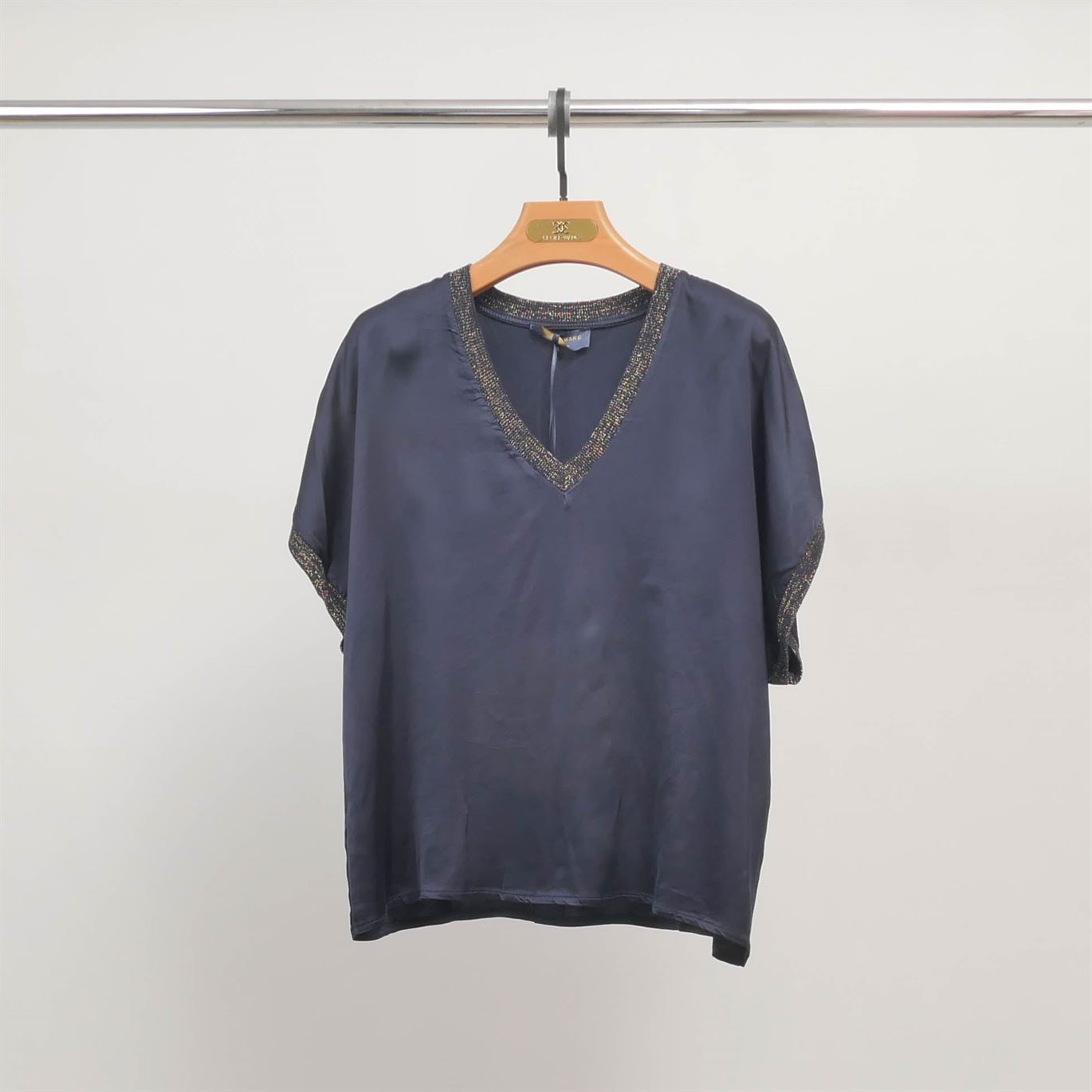 Un incontournable du vestiaire féminin qui conjugue élégance et simplicité avec brio. Cette tunique à col V séduit par son tombé fluide et son toucher soyeux, sublimé par une finition satinée éclatante.