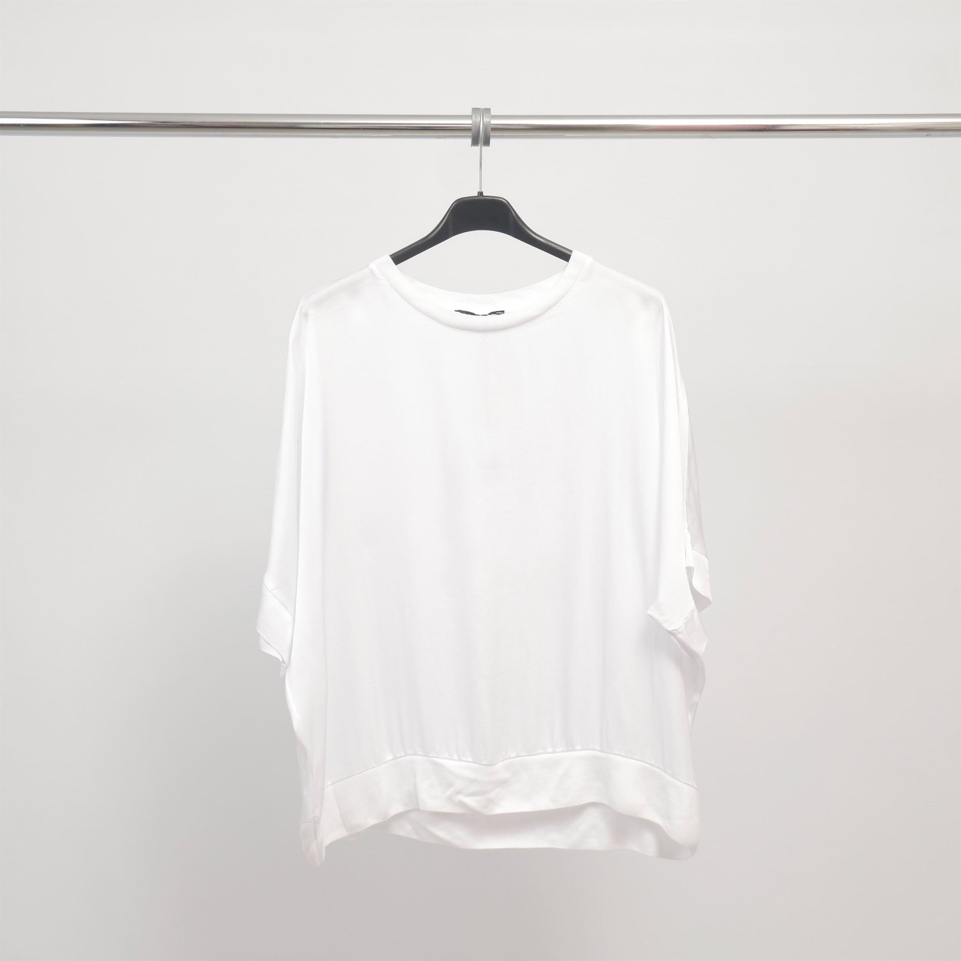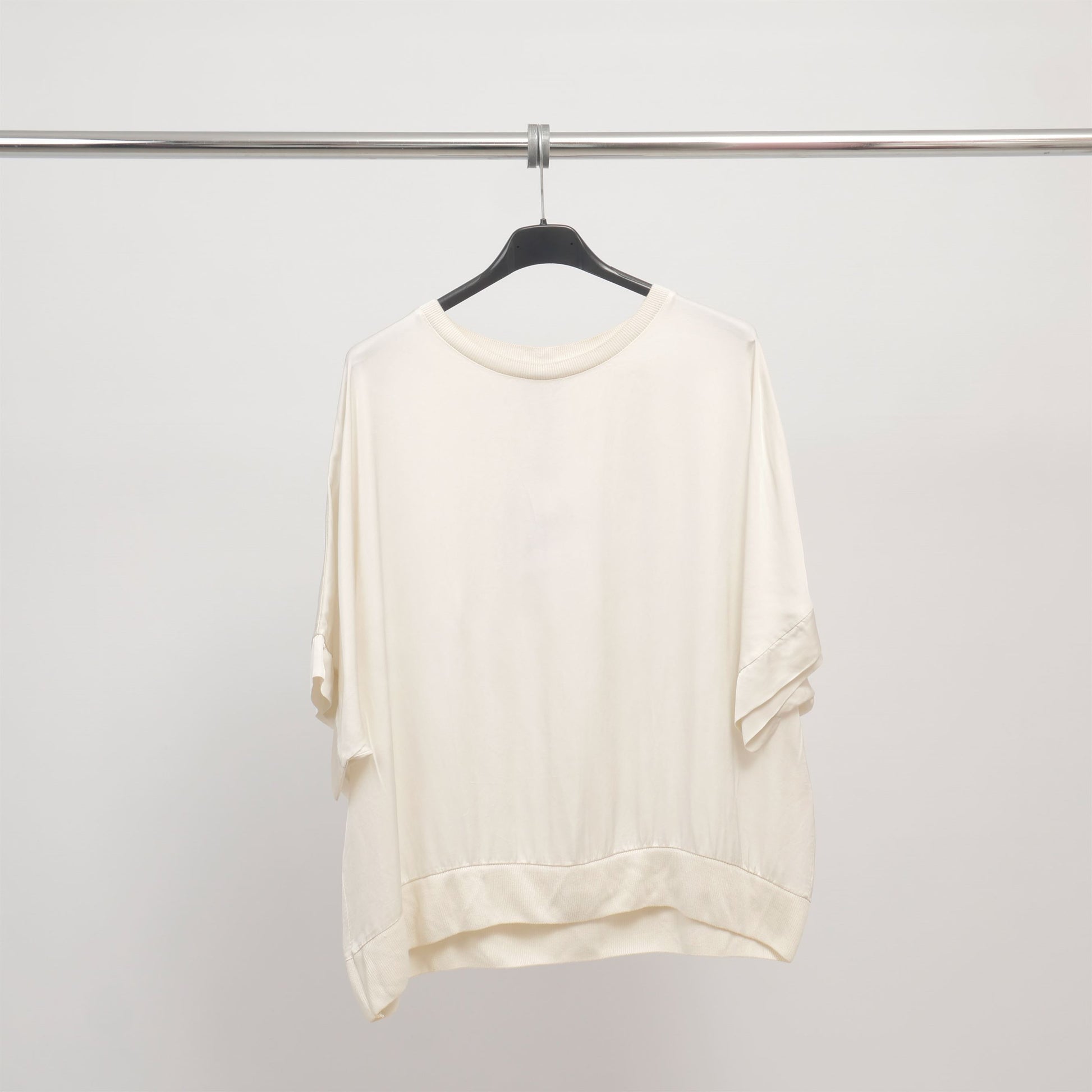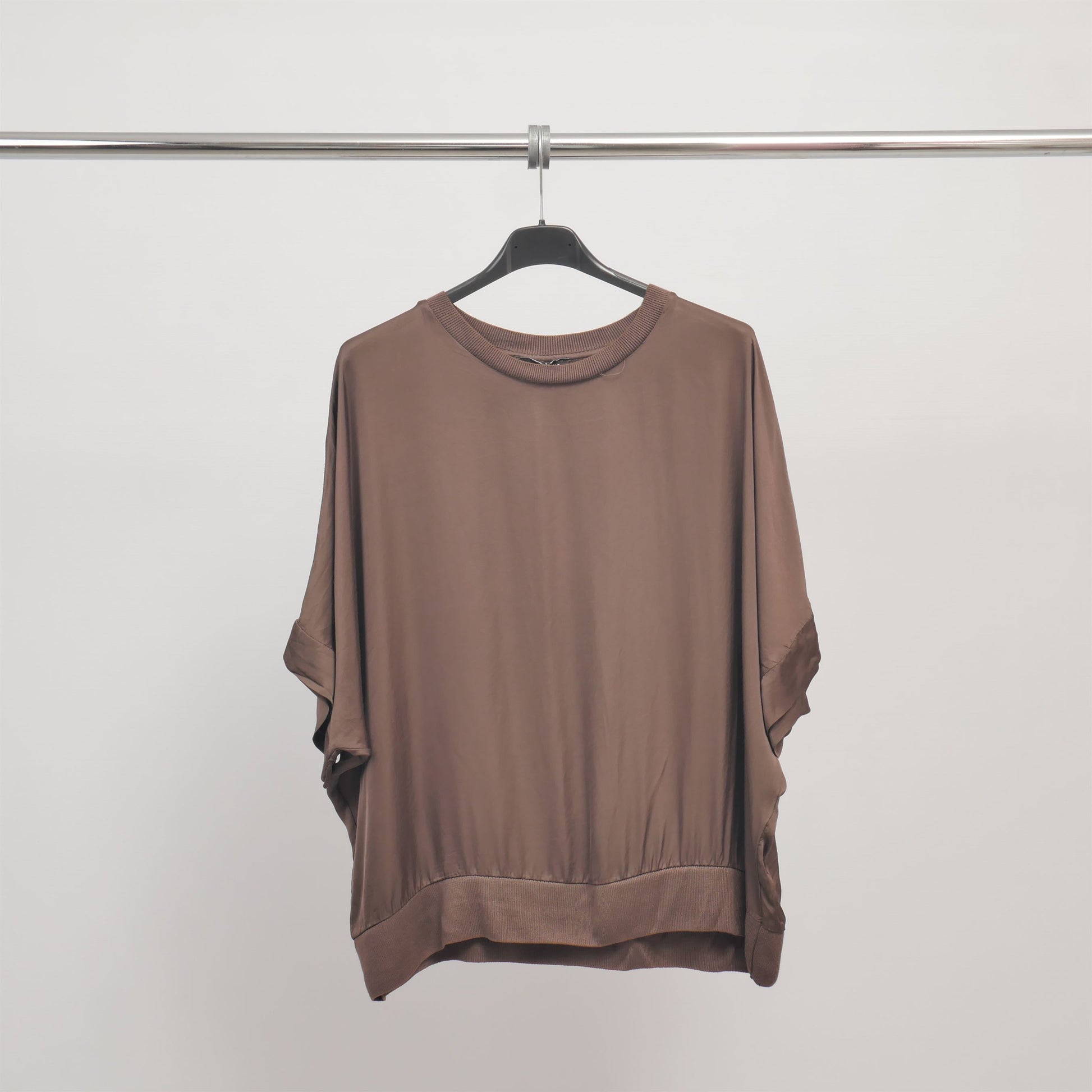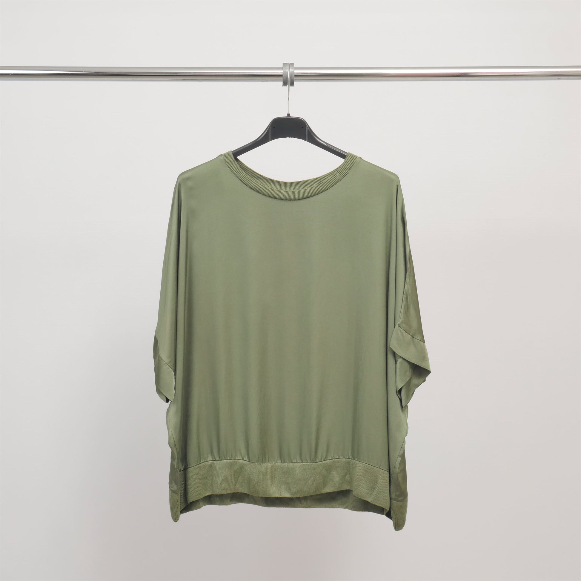 Confort et élégance décontractée se rencontrent dans cette tunique à la coupe ample et contemporaine. Son design à manches chauve-souris et son col rond côtelé lui confèrent une allure moderne et facile à porter. Confectionnée en viscose douce et fluide, elle tombe joliment sur la silhouette sans la structurer, idéale pour créer des tenues à la fois stylées et confortables. Portée rentrée dans un pantalon taille haute ou flottante sur un legging, elle s’adapte à tous les moments du quotidien.