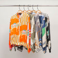 Nettoyage à sec recommandé pour préserver l’éclat des couleurs et la qualité du tissu. Repasser à faible température sur l’envers si nécessaire. Conserver sur cintre pour éviter les plis.