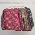 Une touche de fantaisie et de confort s’invite dans votre vestiaire avec cette veste matelassée à pois au charme rétro assumé. Son motif à pois, intemporel et joyeux, contraste joliment avec la coupe droite et épurée, pour un look à la fois décontracté et raffiné.