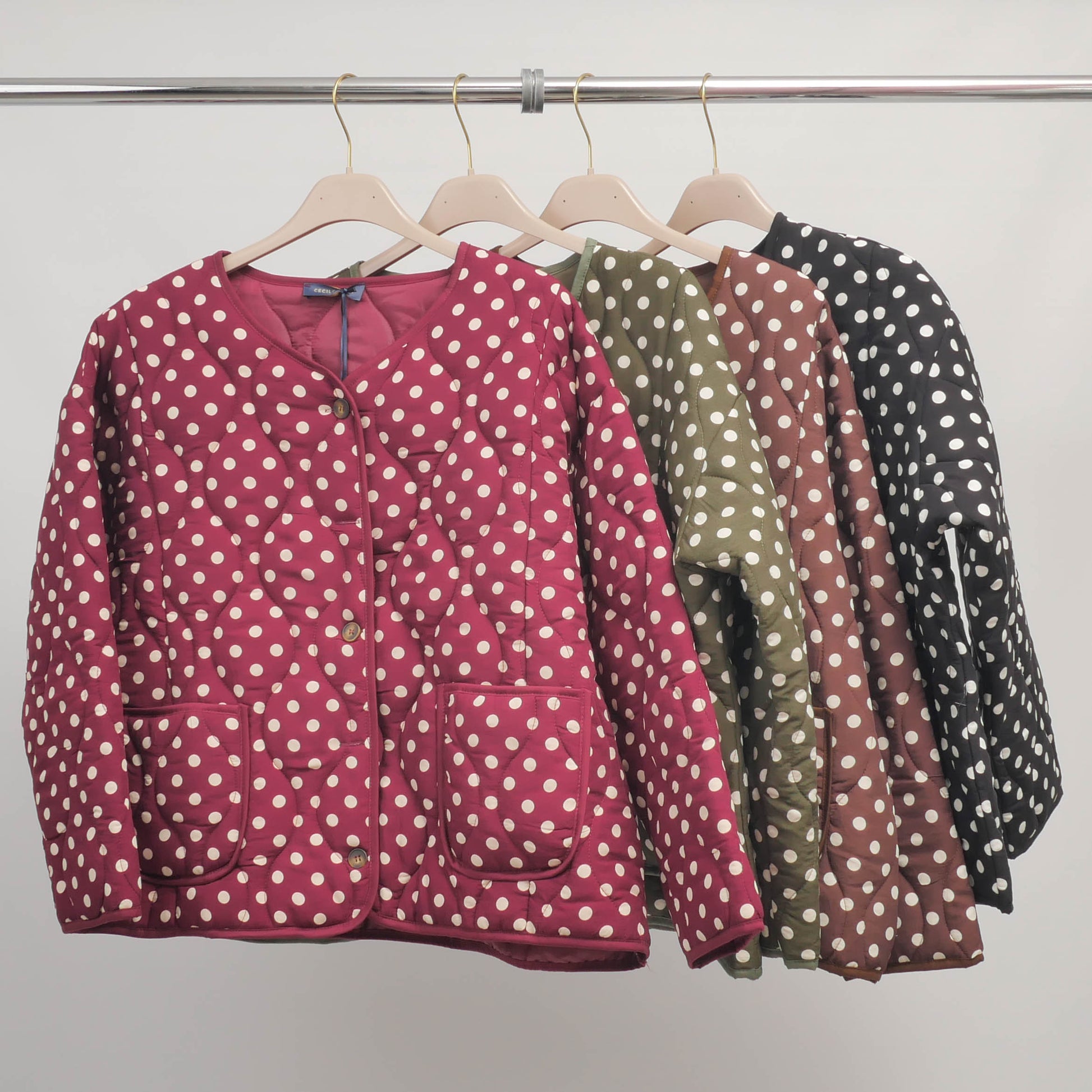 Veste matelassée à pois avec poches plaquées - DB87012