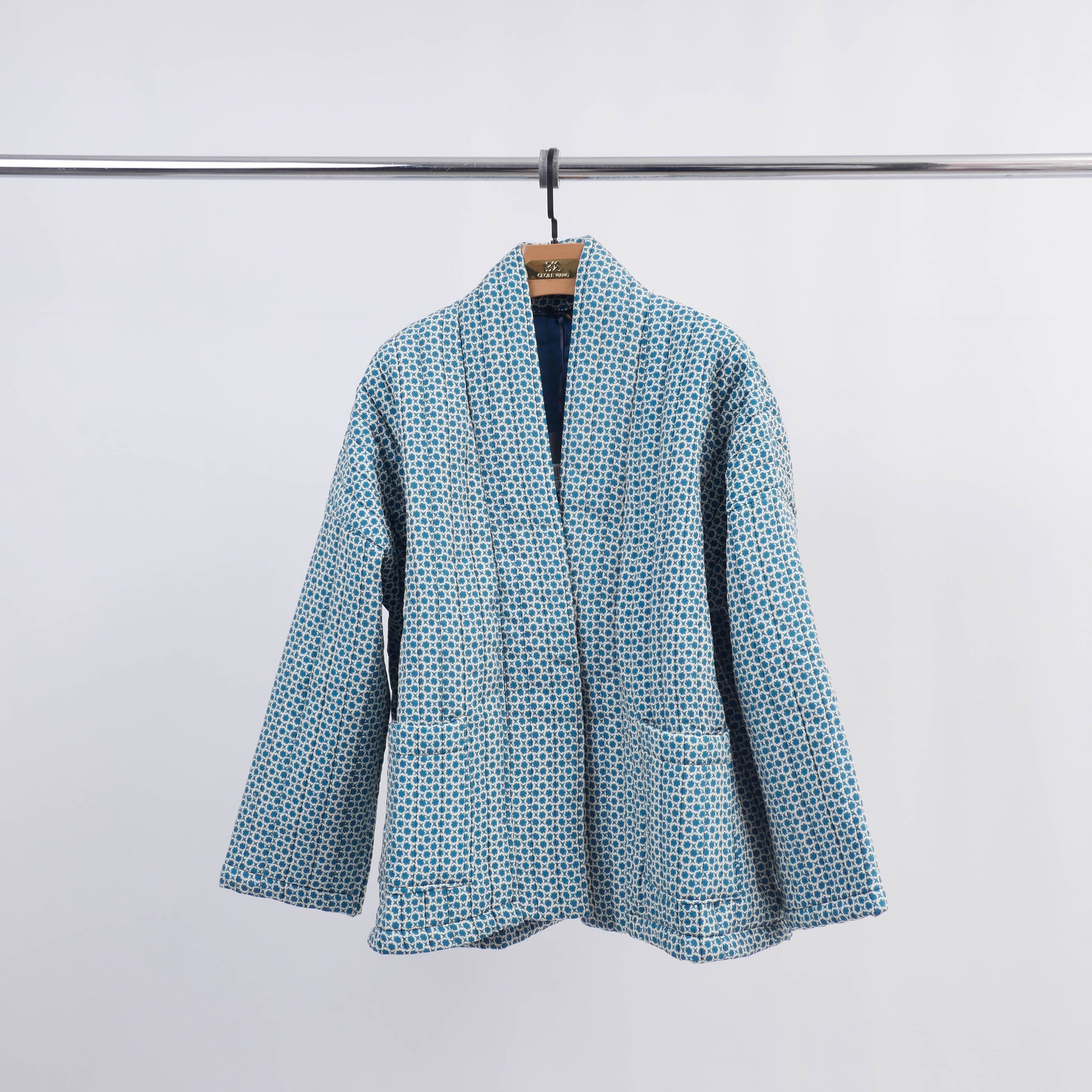 Un équilibre parfait entre confort et caractère. Cette veste matelassée séduit par son imprimé graphique et sa coupe épurée inspirée du kimono.