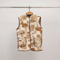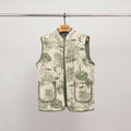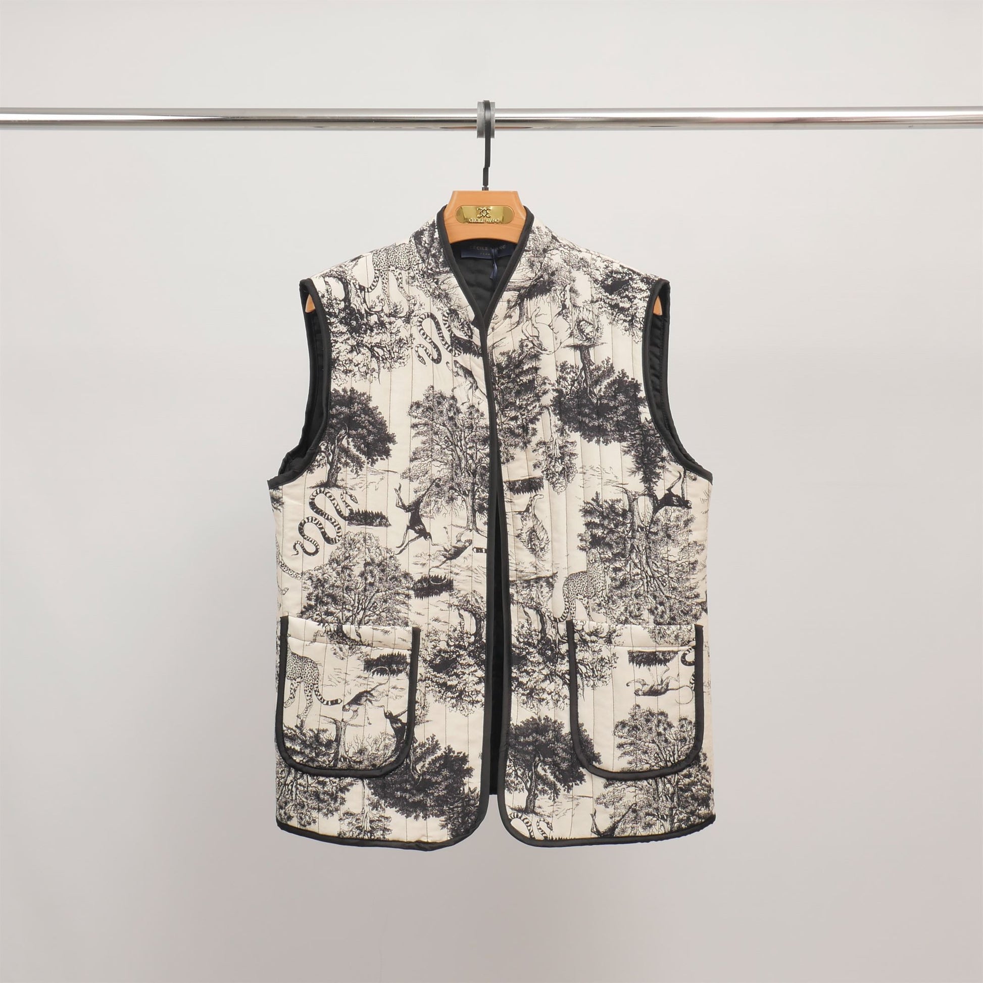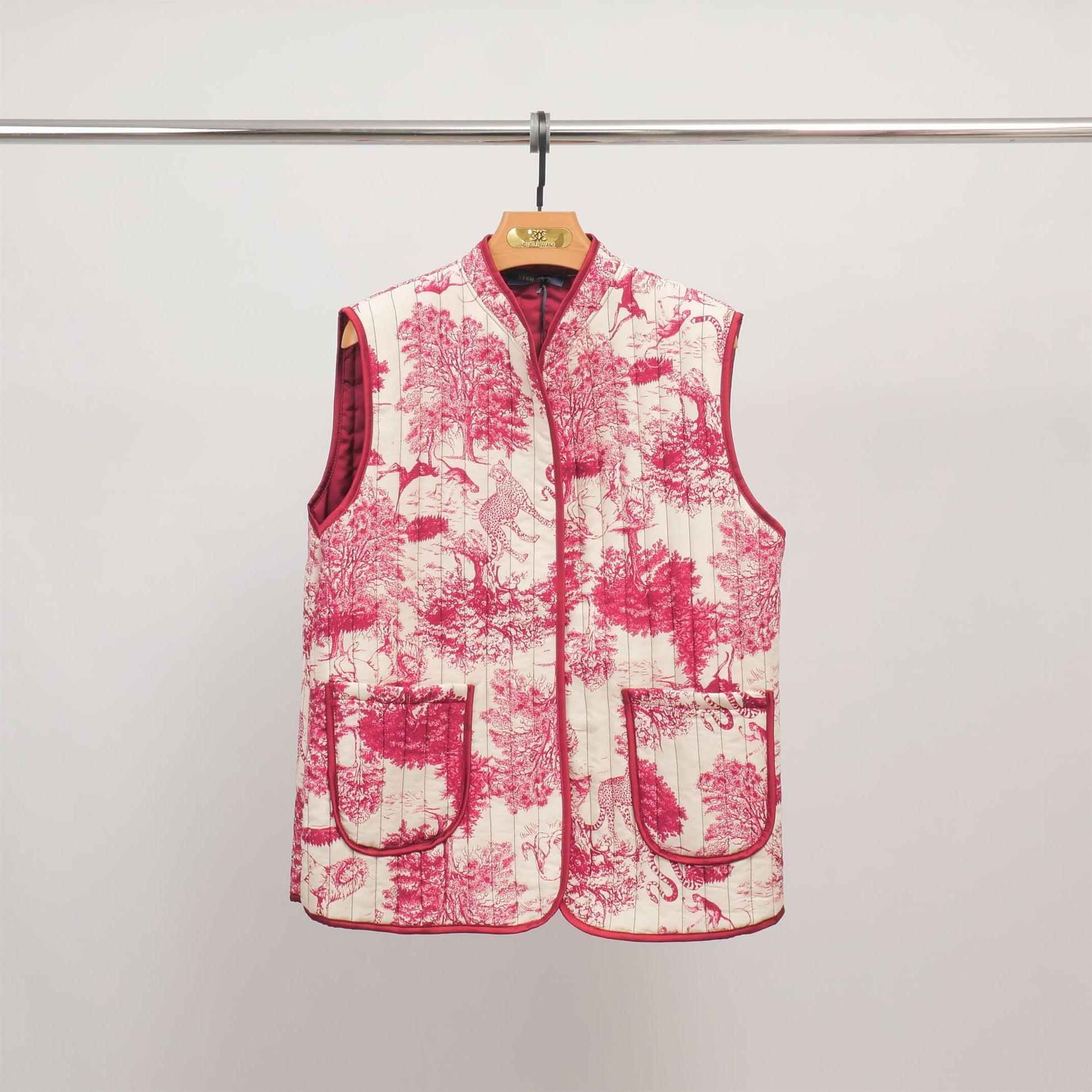 Cette veste sans manches revisite le gilet matelassé avec une touche d'élégance graphique. Son imprimé jungle délicat façon gravure, décliné en plusieurs coloris profonds, évoque une esthétique vintage revisitée avec modernité.
