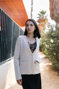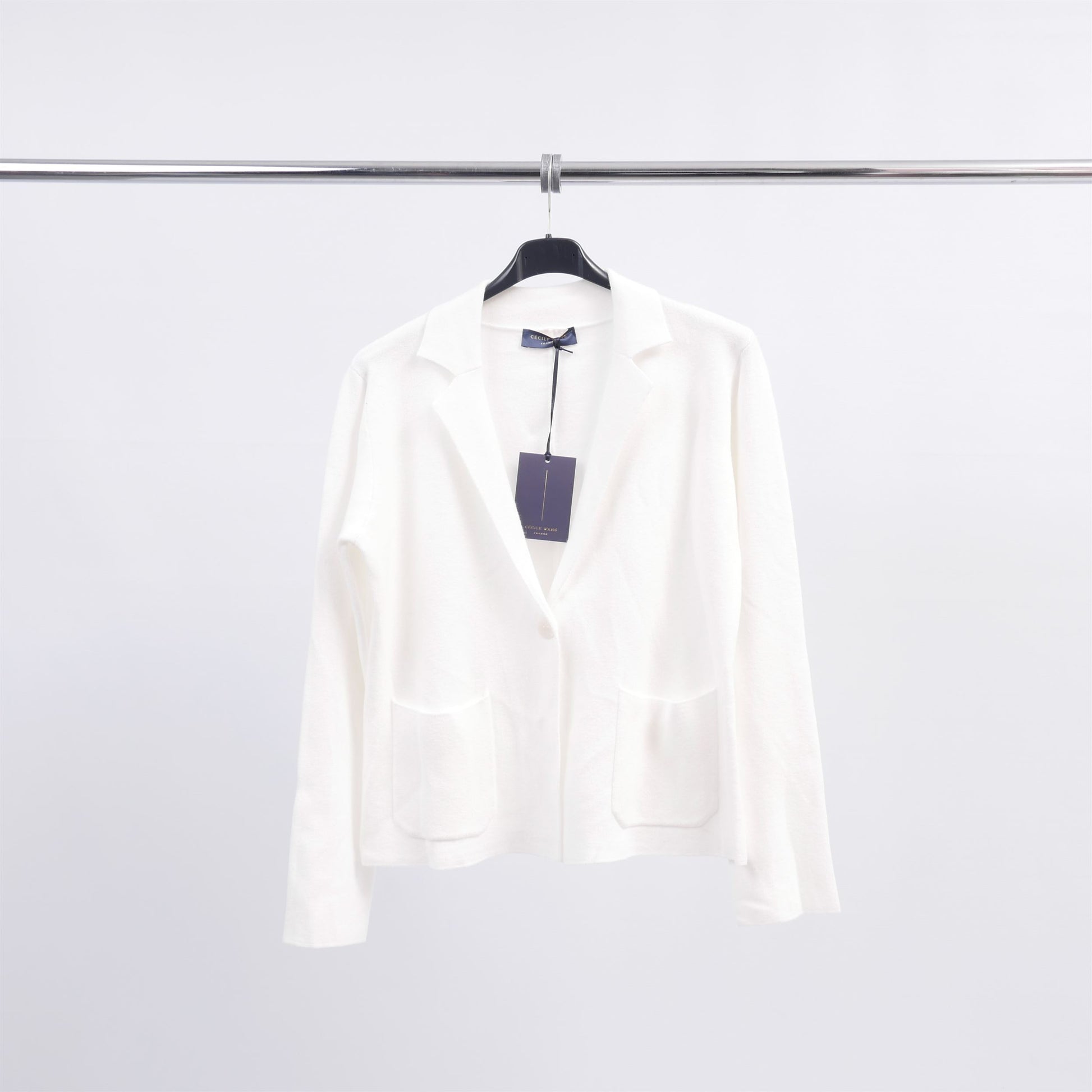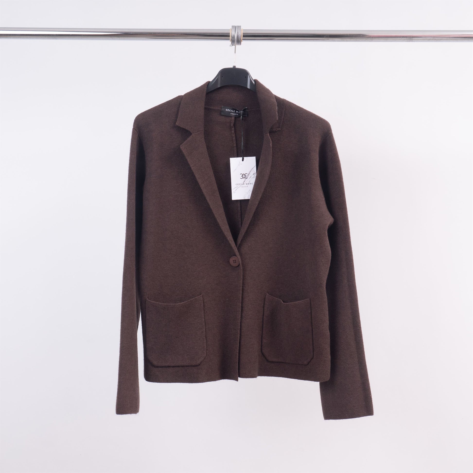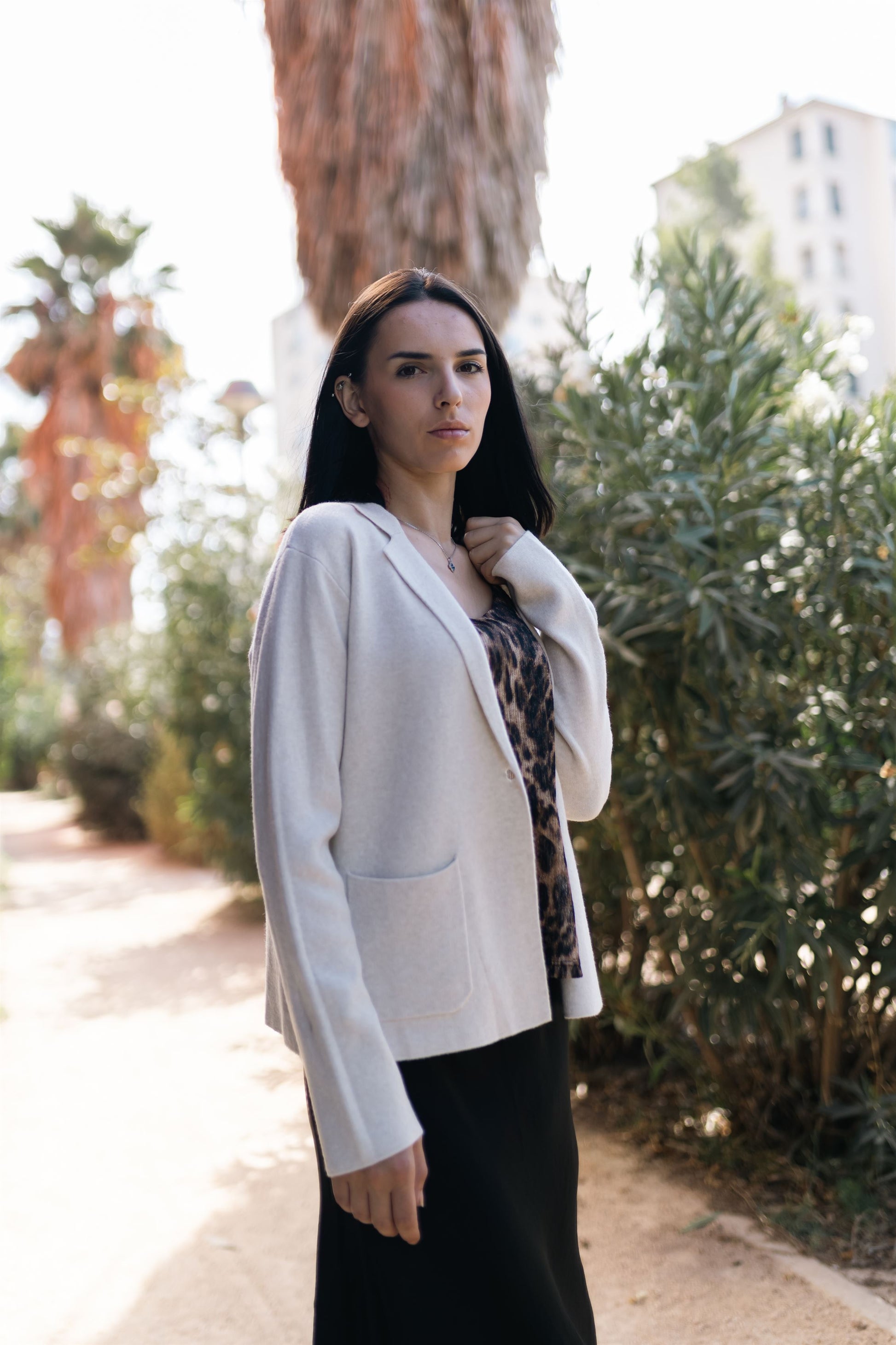 Cette veste légère au style tailleur revisité est parfaite pour une allure chic sans rigidité. Conçue dans une maille douce et fluide, elle offre un tombé naturel et confortable. Elle se ferme avec un bouton unique et dispose de deux poches plaquées pour une touche pratique et élégante. Idéale aussi bien pour le bureau que pour un look décontracté raffiné.