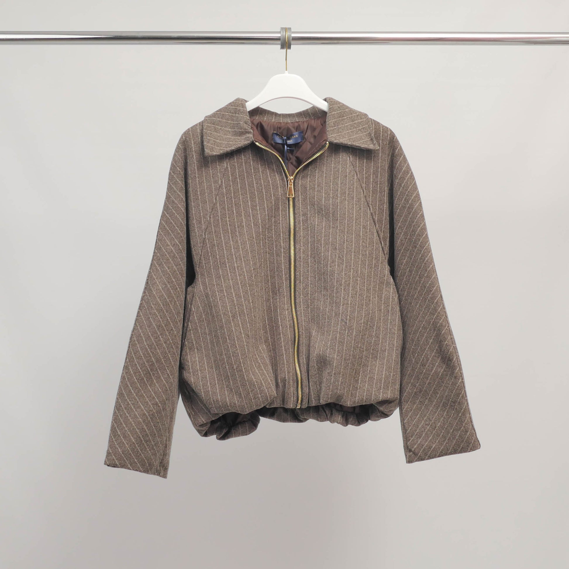 Un esprit tailoring revisité dans une version casual chic. Cette veste zippée en tissu à fines rayures verticales allie élégance urbaine et confort du quotidien.