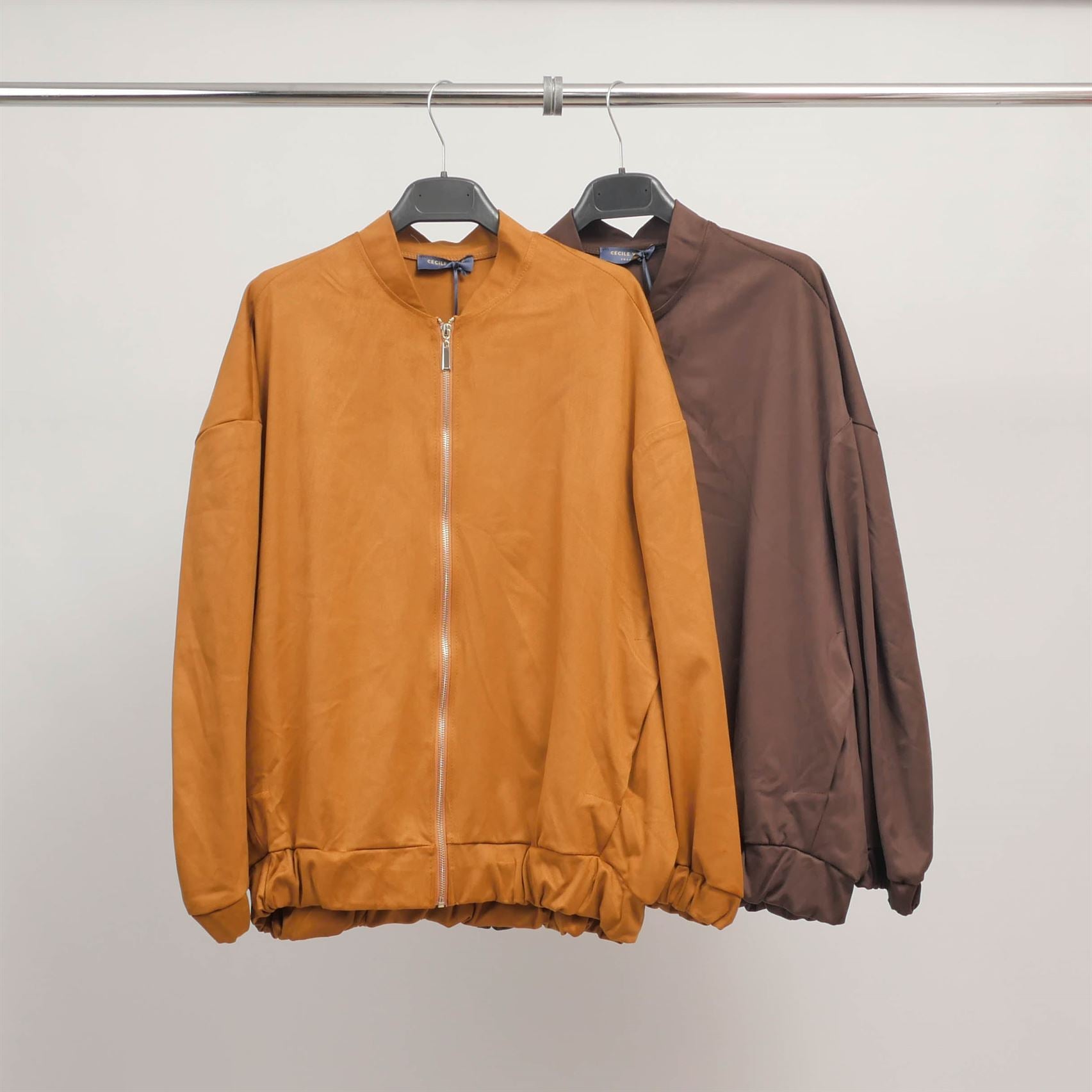 Adoptez un style urbain et raffiné avec cette veste zippée à col bomber, à l’allure minimaliste et à la finition suédine ultra douce. Sa coupe ample légèrement oversize assure une silhouette décontractée tout en restant structurée. Les détails élastiqués à la taille et aux poignets ajoutent confort et maintien, tandis que le zip central ton sur ton signe une touche moderne et fonctionnelle.