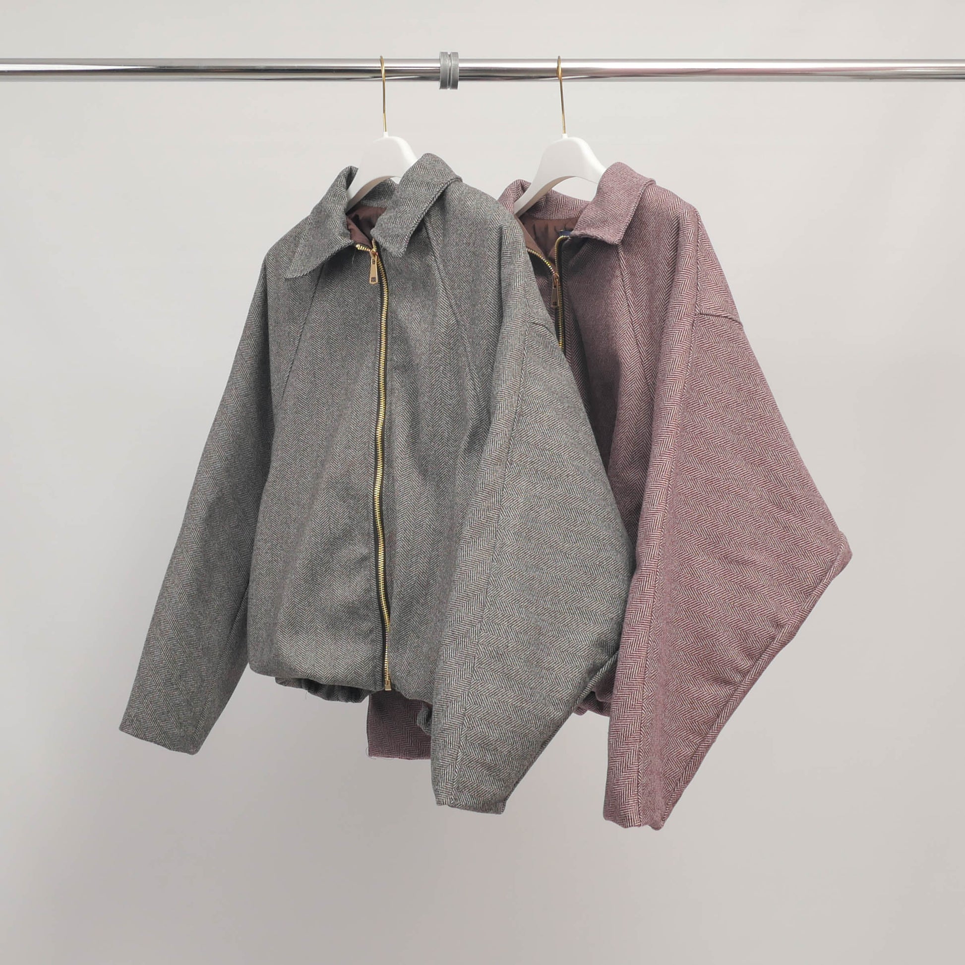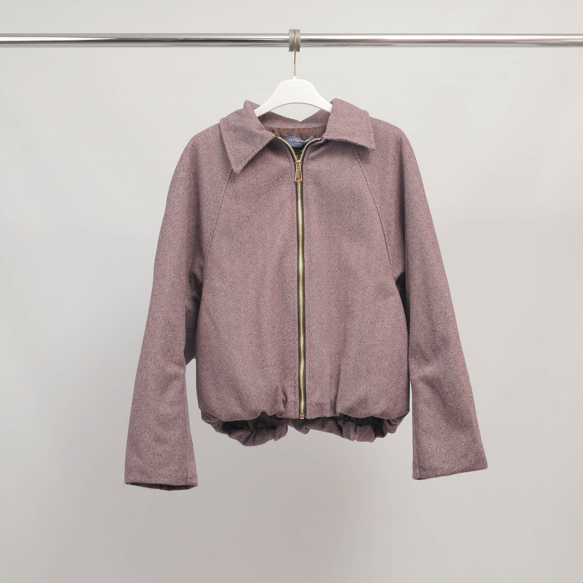 Un esprit rétro revisité avec modernité. Cette veste zippée en tissu chevron offre une allure structurée et décontractée à la fois, idéale pour dynamiser une silhouette citadine.