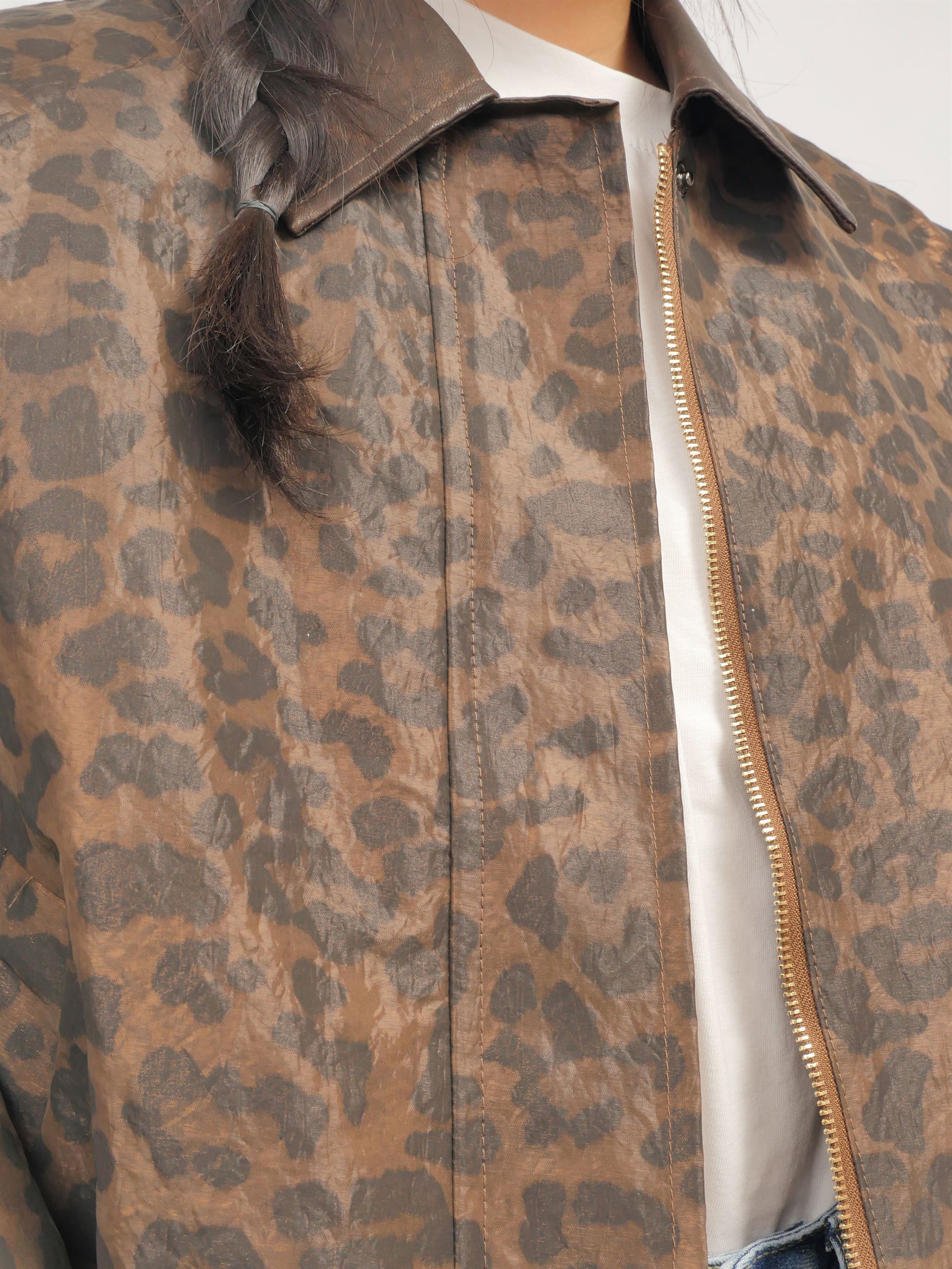 Veste zippée imprimé léopard en tissu enduit MJ263916